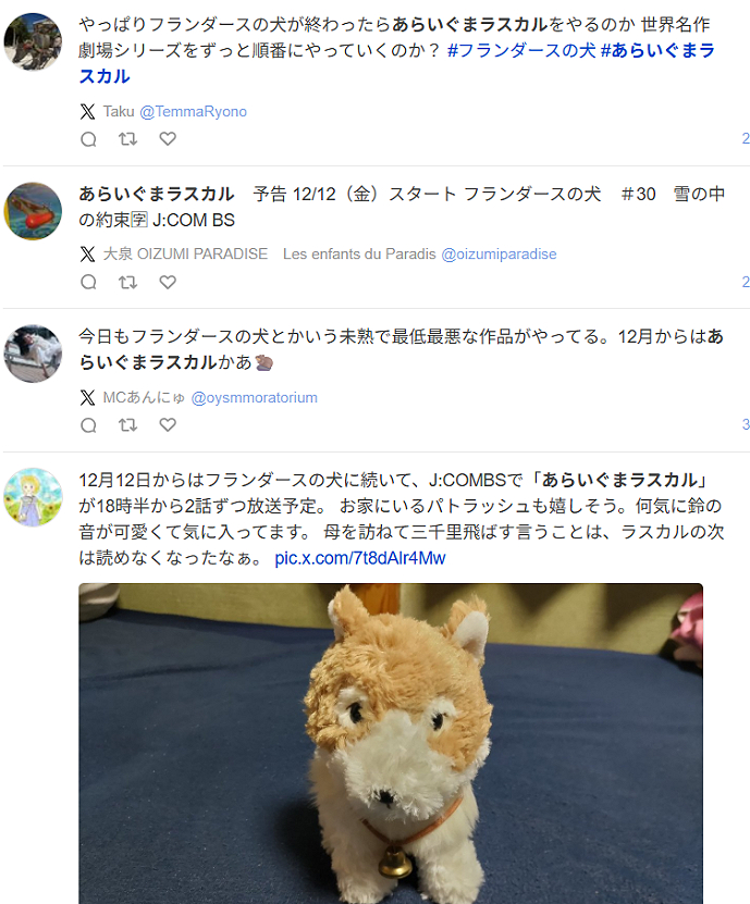 "内海敏彦"カテゴリーの記事一覧 日本タレント名鑑 今さっきテレビで鶴瓶や王さんの 住所どうこうやってたが 内海敏彦くんもタレント名鑑に 住所や小学校や電話番号載ってるんよね 国立国会図書館でコピーさせてもらった 昭和時代は本当に芸能人ってそういうのまで 公にする時代だったから もういまは引っ越しもされてると思うが どうかお元気であってほしいなぁ [0回]PR あらいぐまラスカル あらいぐまラスカル 12月12日スタートの予告ながれた! やっぱり内海敏彦くんの声は天使の美声すぎる フランダースと同じでHGリマスター版 放送が嬉しい。全話ブルーレイ保存だね [0回] というわけで水島裕 ほぼ半年かけてようやく待ったのが今日放送 本当に内海敏彦くんに声似てるんだよ そういえば2人ヒットエンドランでも共演していたなぁ その後愛ラブスマップでも司会進行してたなぁ もう70近いけどいまだ少年のような声の人 見た めっちゃくちゃ 声そっくり 内海敏彦そっくり そうなると今の内海敏彦くんも 水島裕そっくりなんだろうなぁ [0回] 久しぶりに 大江戸捜査網の再放送あるようだ しかも滅多にしてくれない内海敏彦くんの終盤のやつだな 実は若様だったりの。 いつも貧乏人が多かったので新鮮。 ただ再放送は半端なところで中断多いんだよなぁ。 どうか内海敏彦くんあたりまでやりますように、 [0回] 毎日内海敏彦くんに会える!! ついに確定 確定! 12月からあらいぐまラスカル無料放送! マルコより先にやってくれて感謝の極み 全部ブルーレイ保存しよう [0回] ようわからん 小さな恋のメロディ 結局吹替え版だったが内海敏彦じゃないし でも公式HPは字幕版で紹介だし 爆発うぎゃー!!! [0回] 猫目小僧のDVDが でるんか 内海敏彦くんののりこ~のりこ~って 浜どくろのお芝居が聞けるね どっちかというと紙芝居アニメなんで 声優さんは割と自由に演技できたかも 戦隊シリーズも終わるしお金の使い道へるんで 気が向いたら買おう [0回]